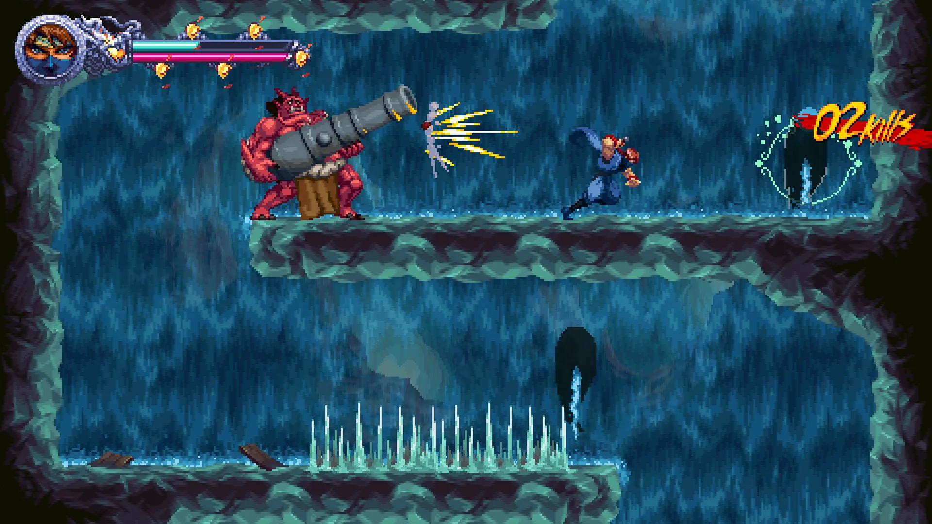 La historia es casi testimonial y actúa como excusa. Si eres muy fan, verás claramente guiños constantes al lore de Ninja Gaiden, pero si no estás muy metido, no le darás demasiada importancia. Eso sí, los diálogos me parecen concretos, certeros y tienen un punto de humor. Por cierto, las cinemáticas son una absoluta maravilla. El pixel art es increíblemente bonito, es tremendo el trabajo de The Game Kitchen en este apartado.